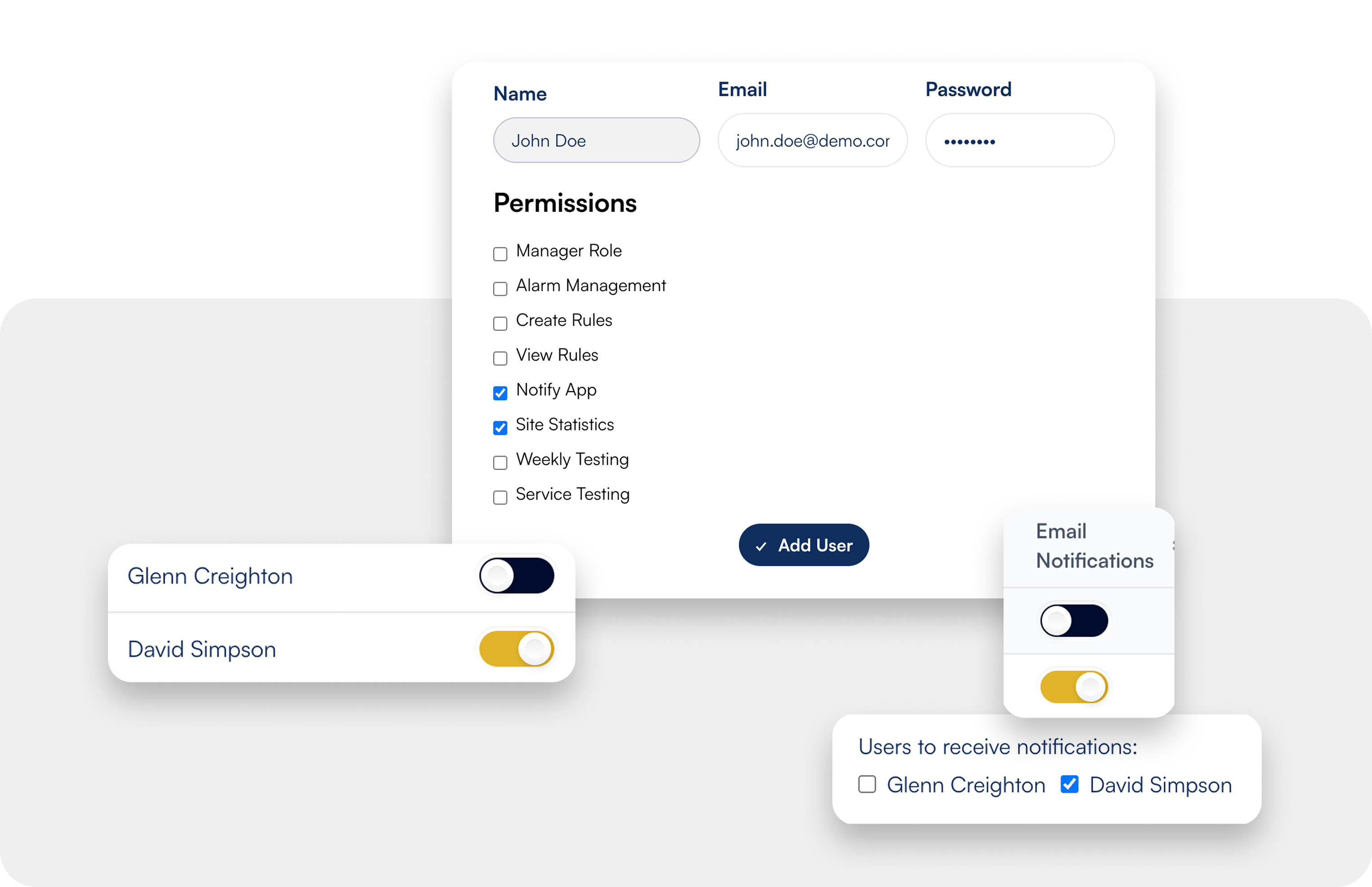 Role-based access for engineers, contractors, and internal teams, showing only the sites and systems relevant to them.