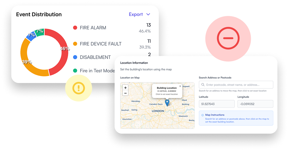 Our solution stores a complete audit trail of critical alarm data from all interlinked alarms in the system. This documents all fire events across the network, and notifies of any non-compliance with British regulations.